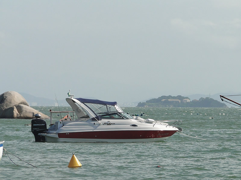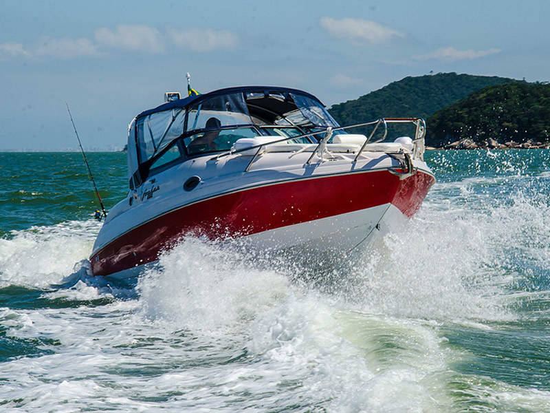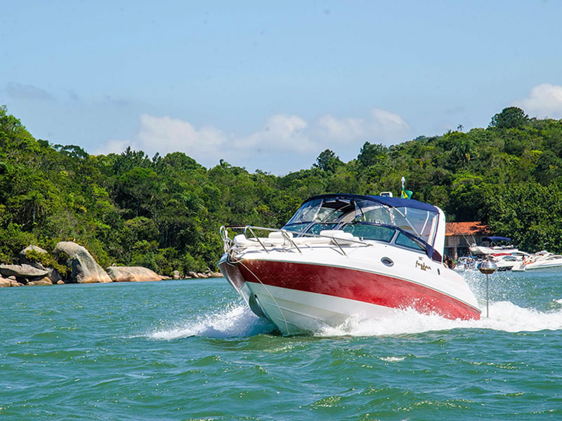 Para seu conforto nossa embarcação possui fechamento frontal e lateral, minimizando vento e evitando respingos de água nos passageiros. É a lancha perfeita para famílias e grupos pequenos de amigos que desejam fazer passeios pelo Norte da Ilha e Tinguá