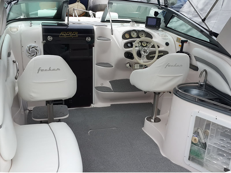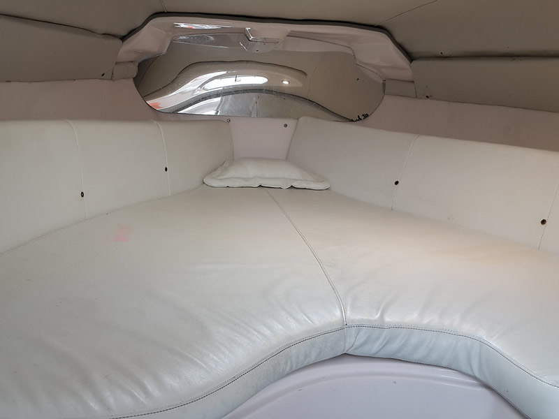 A lancha possui amplo espaço interno, com estofamento recentemente reformado, solário de proa, cabine, banheiro fechado, sistema de som completo com módulo de potência e DVD com conexão USB e Bluetooth.